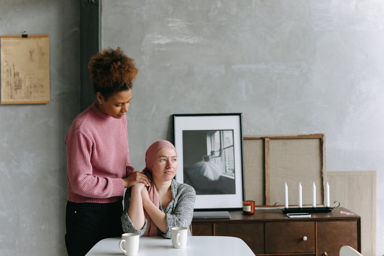 Les perruques, turbans ou foulards sont des outils précieux. Ils aident à se protéger, à se présenter au monde, à se sentir moins exposée. Mais ils ne répondent pas toujours au besoin profond :